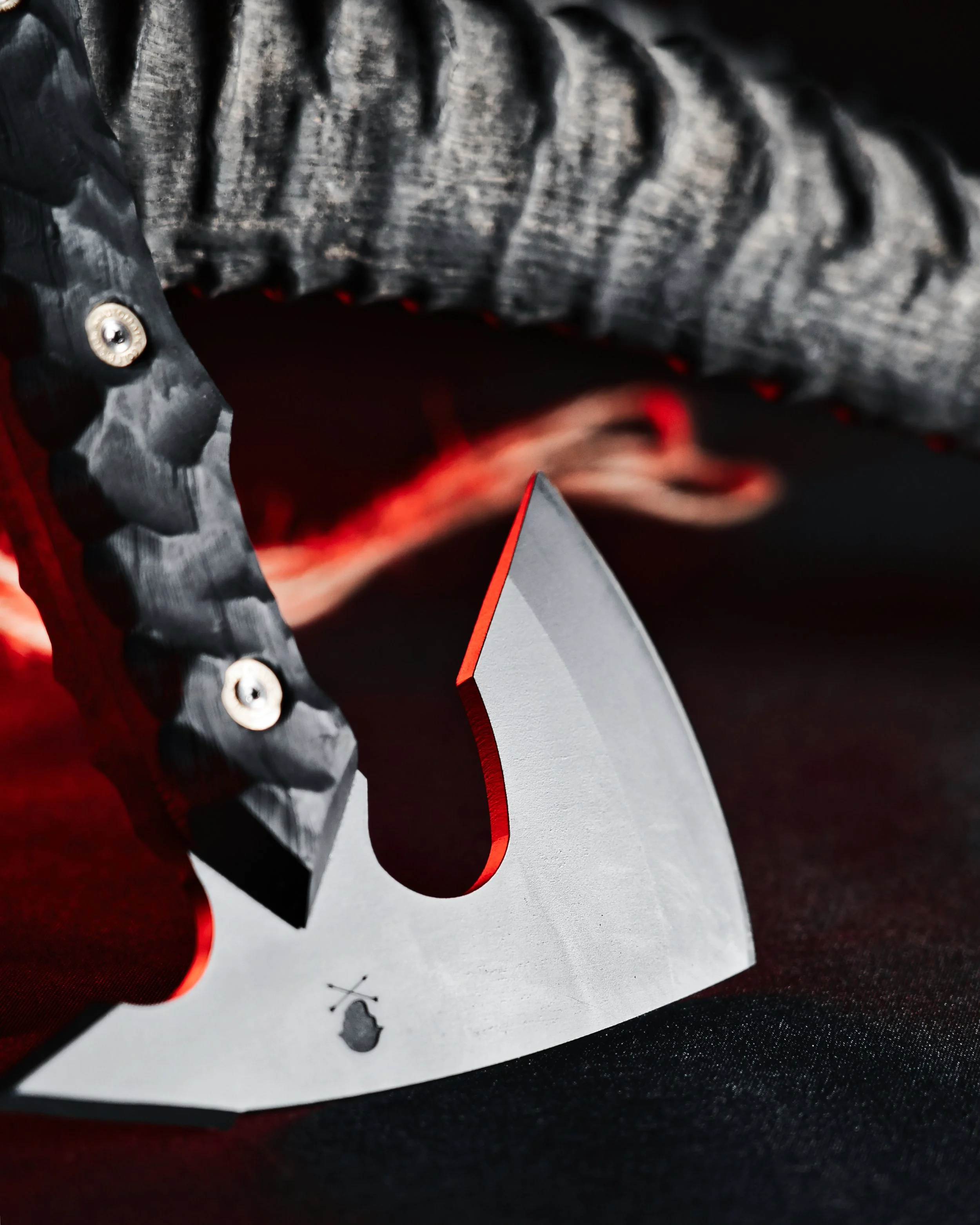 Inspired by the brutal boarding axes once used by the Royal Navy and the hard-hitting raids of Anders Lassen — a Viking-blooded SOE operator who carved his legend in close-quarters chaos — The Raider carries that same spirit into modern hands.