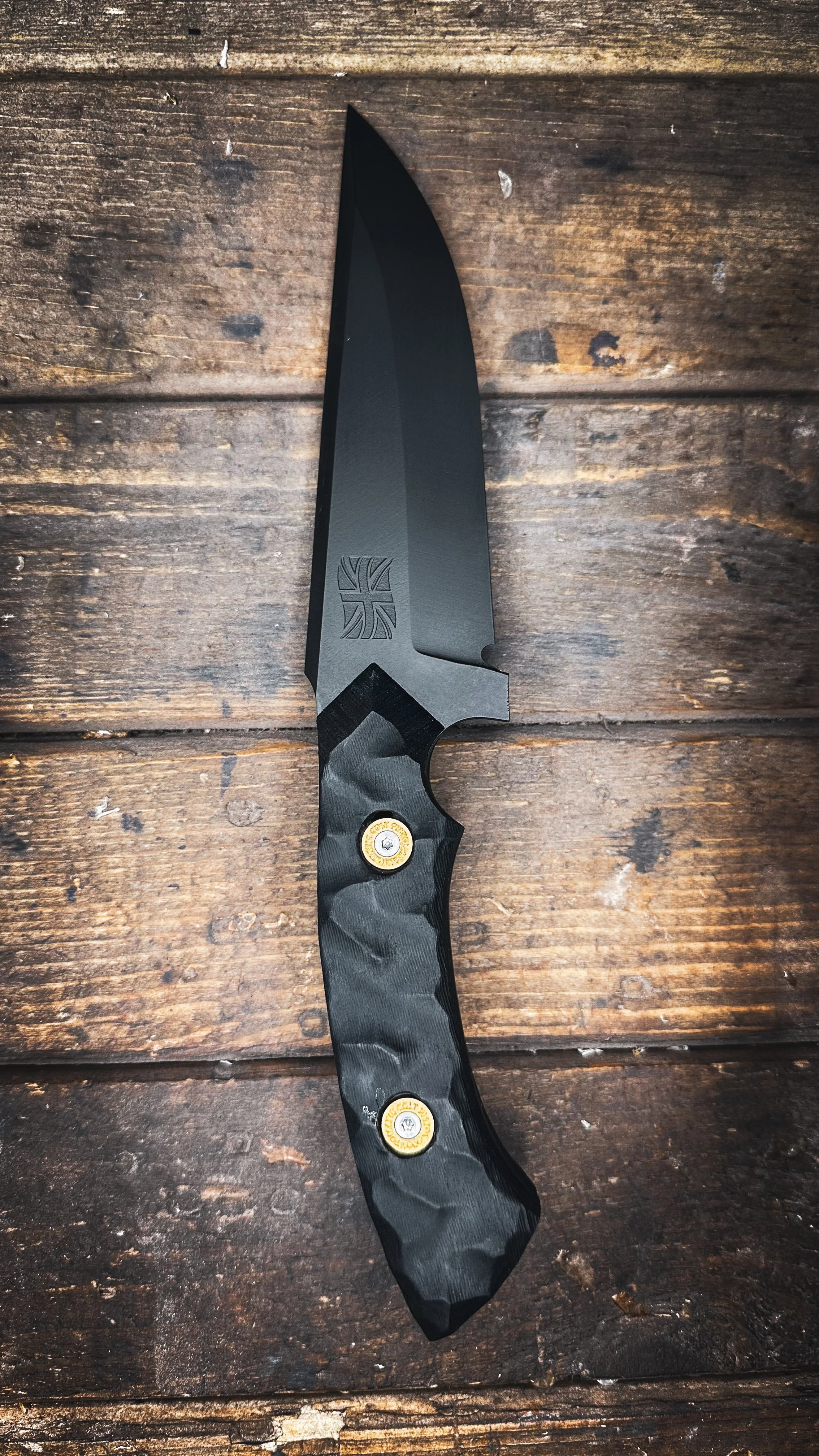 Built in that same spirit, the Chariot is handmade here in Britain from 4.5 mm thick British 1095 high-carbon steel, chosen for its strength, edge retention, and reliability in any conditions. The blade is Cerakote-finished for superior corrosion resistance and a clean, tactical aesthetic, then fitted with a stabilised wood handle — blending natural character with modern endurance.
